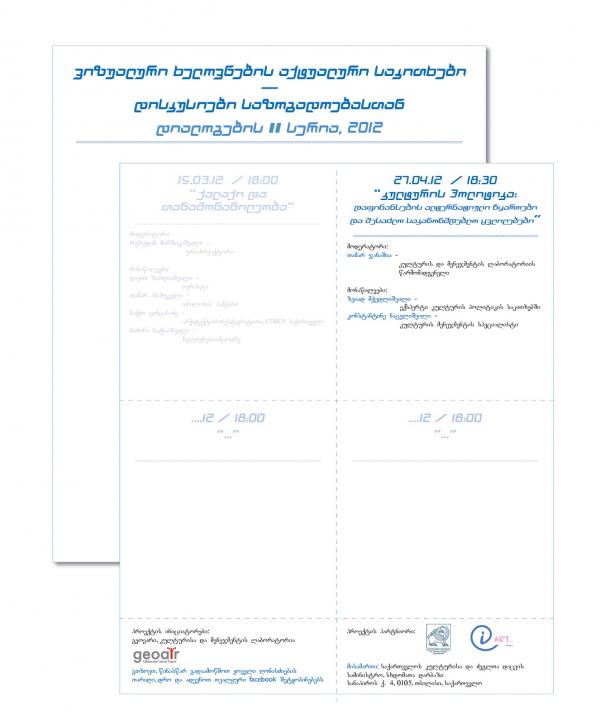 შეხვედრის თემაა კულტურის დაფინანსების არსებული შესაძლებლობები და პოლიტიკა. განხილული იქნა საქართველოსა და სხვა ქვეყნებში მოქმედი პრაქტიკა, დაფინანსების სხვადასხვა ალტერნატიული წყაროების არსებობა და მათი გამოყენების პერსპექტივები, საკანონმდებლო სისტემის შესაძლო ცვლილებები, რომლებიც მიმართული იქნება კერძო სექტორის წარმომადგენლების მხრიდან კულტურის პროექტების დაფინანსების სტიმულირების ხელშეწყობაზე. შეხვედრაზე მოწვეული არიან როგორც სახელმწიფო, ისე დამოუკიდებელი ორგანიზაციების, კერძო სექტორისა და საერთაშორისო ორგანიზაციების წარმომადგენლები.