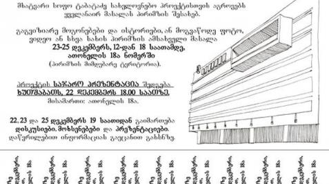 საჯარო პრეზენტაცია გაიმართა ხუთშაბათს, 22 დეკემბერს 18.00 საათზე. მისამართზე: ათონელის 18ა (პირიმზის მიმდებარე ტერიტორია).