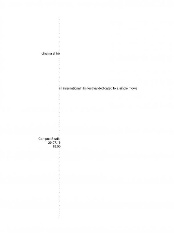 cinema shiró is a international film festival dedicated to a single movie. Almost fifteen years ago, I recorded a movie late at night out of sheer curiosity, the TV-guide simply said experimental and Japanese, no brainer, press record, because sometimes you just have to follow your instincts to discover something amazing. And it was before the time when everything was available to download or stream, so you had to work on your personal archive anyway. Ever since this magic night, I carry this movie with me wherever I go and take every opportunity to screen it. Every time I watch it, it gets more mysterious, more fascinating, more intriguing. During the almost 80 screenings I did in the last years I never met a person who was not impressed by this movie.