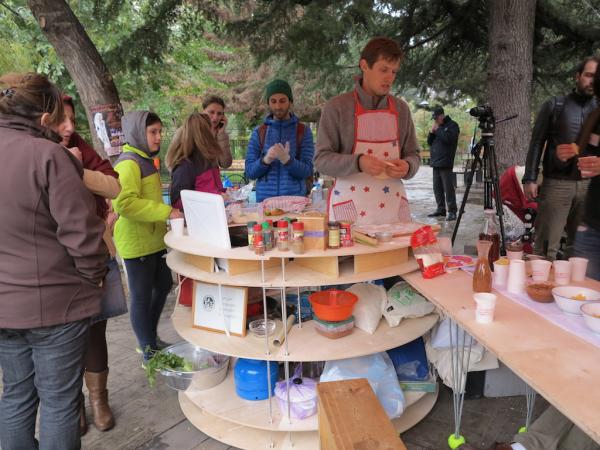 ARAS - The American Reputation Aid Society. ARAS is an interactive-installation and public-cooking-performance, which uses a mobile kitchen, street-vendor's cart, as platform for a meaningful inter-cultural conversation. ARAS is an ongoing public performances that, using the satirical personal of an aid foundation, distributes excellent examples of home-cooked „American food“ as an invitation for a conversation about food, culture, industrialization, personal histories, national identity and international policy. This project references the American tradition of Bake Sales, Pancake Breakfasts, Community Pie Socials, and the sometimes seemingly cavalier belief that “good food can fix anything.”