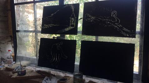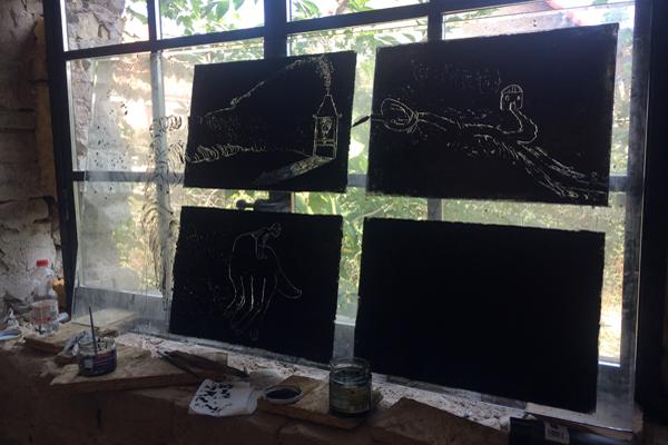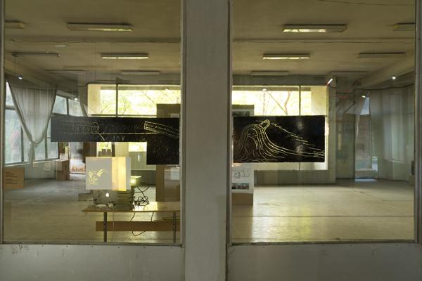 For the Tbilisi Architecture Biennial, Oykut has made drawings directly on the glass windows in the exhibition space. These drawings were her observations of Tbilisi and its inhabitants. As a second step, she photographed these images and animated them. The animation is projected on the same glass windows, where the drawings are.