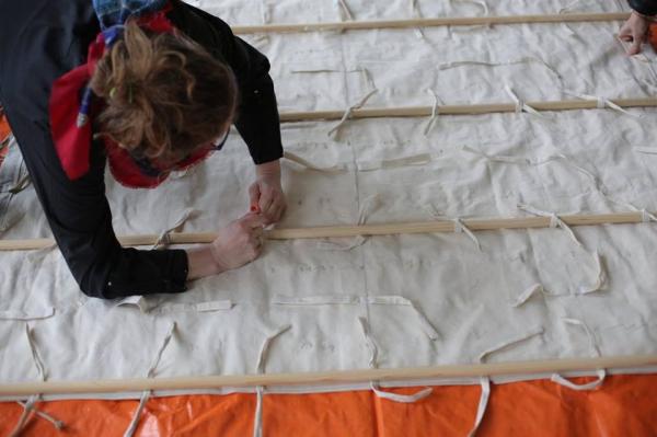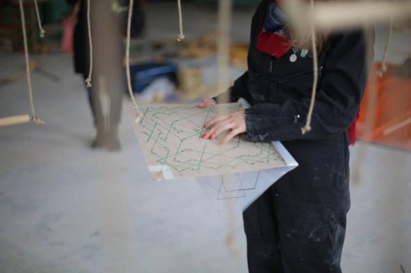 As Iza Tarasewicz’s practice researches mobility, flexibility and the reorganization of systems, we have invited her to participate in the project dedicated to the Tbilisi Chess Palace. Installation she has created particularly for this project takes its departure from a knight movement diagram, an isolated motion of knight figure. This chessman is the oldest unaltered structure in the chess movement. The diagrams show the choreography of tactical possibilities of knight. Isolation of the one figure is associated with an internal fight of the individual in general and a player, who while game/fight is isolated from the surrounding. And while the fight is reduced to a regulated form on a 2 dimensional board/field, most images of tactical possibilities (performance) takes place in the imagination of the player. The installation is a try to turn a two dimensional movement of a knight figure into a 3 dimensional object and imagine it in a space. Performativity and choreography clearly comes to the fore here.