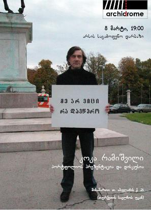 Koka Ramishvili, born in 1956 in Tbilisi, Georgia, lives and works in Tbilisi. His works include drawings, video and installation. One feature that is common to most of Ramishvili’s works is their construction on the principle of counterpoint. ‘Pronostic Eventuel’ and ‘Drawing Lessons’ are built on the dialectics of the internal and external; ‘The Story of Caspar Hauser’ presents the picture of the world structurally divided into two opposite poles: the up and down, the right and left, the front and back; ‘The Change’ is about the conflict between the masculine and feminine. Social order is divided into these works in an open and closed, private and public history and everyday life. The binary model is illustrated in his works in an open way so that its elements co-exist rather than dominate each other. Since 1995 Ramishvili has been offered numerous grants and awards for his videos and photographs (Ministry of Culture and Education, Vienna; Academy Schloss Solitude, Stuttgart; Département des affaires culturelles de la Ville de Geneva). His works have been exhibited in various museums (such as Tate Modern in London, MAMCO in Geneva, Goethe Institut in Berlin, Russian National Gallery in Moscow, Fine Art Museum of Nantes) and galleries (Kulturmanagment Hausler in Munich, Guelman Gallery in Moscow, Newman Popiashvili Gallery in New York, etc).