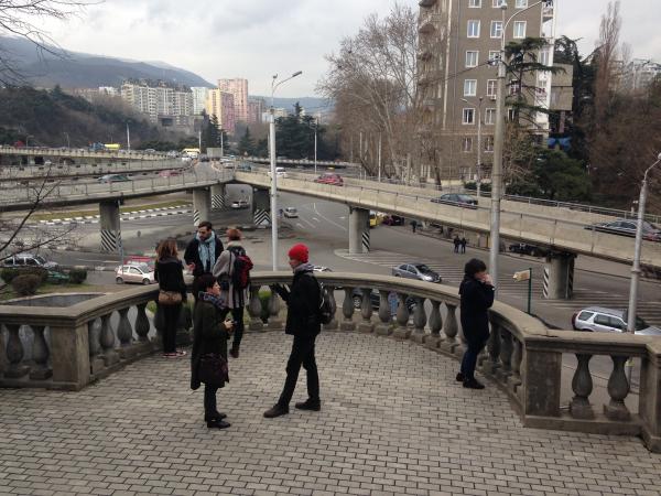 In the workshop "assembling fragments" participants examined several significant places in Tbilisi by collecting photographic images and found material. Therefore they concentrated on a fragmentary documentation. Textures, patterns, shapes and cityscapes merged to form an abstract collection of images that manifested in a small zine, investigating present Tbilisi. Contributions by: Tamara Bokuchava, Maroussia Ferry, Moritz Freudenberg, Qeta Gvinepadze, Lika Jalagania, Ana Jikia, Gvantsa Jishkariani, Marius Land, Lado Lomitashvili, Tika Nadareishvili.