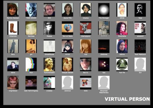 http://virtualperson.net. It is a website she created 4 years ago, an online tool made to assemble texts and pictures in order to create a virtual character.