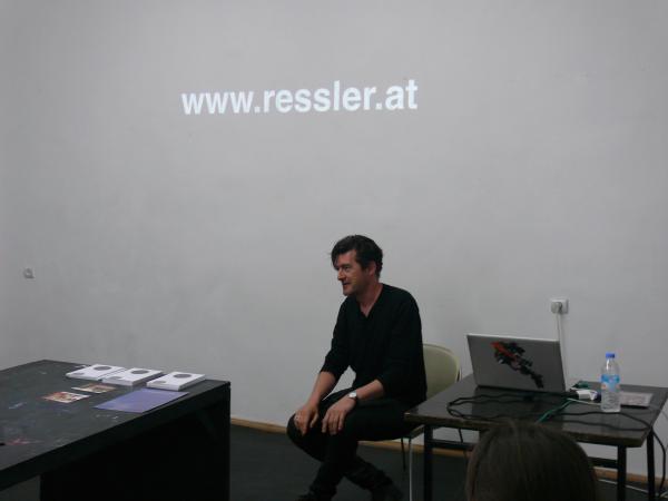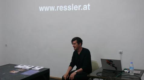 His projects have been in solo exhibitions at the Berkeley Art Museum, USA; Platform Garanti Contemporary Art Center, Istanbul; Museum of Contemporary Art, Belgrade; Kunstraum at the University of Lüneburg; Centro Cultural Conde Duque, Madrid; Alexandria Contemporary Arts Forum, Egypt; BunkierSztuki Contemporary Art Gallery, Krakow and The Cube Project Space, Taipei. Ressler has participated in more than 200 group exhibitions, including the MASSMoCA, USA; Itaú Cultural Institute, Sao Paulo; National Museum of Contemporary Art, Athens; Van Abbe Museum, Eindhoven and at the biennials in Prague, Seville, Moscow, Taipei, Lyon and Gyumri. A retrospective of his 15 films is taking place at Centre d’ArtContemporain Genève throughout 2013.For the Taipei Biennale 2008, Ressler curated an exhibition on the anti-globalization movement,A World Where Many Worlds Fit. A traveling show on the financial crisis, It’s the Political Economy, Stupid, co-curated with Gregory Sholette, is currently on display at Pori Art Museum in Finland. Their book It’s The Political Economy, Stupid: The Global Financial Crisis in Art and Theory was published by Pluto Press in 2013.