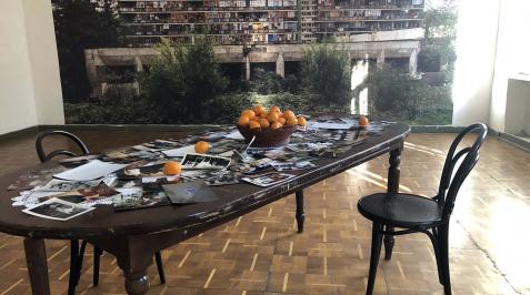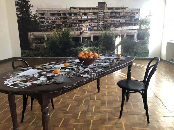 The exhibition Permanent Recreation does not only refer to current physical situation of the architectural heritage, but rethinks it within its social, political and economic context. Paula Ďurinova's video is capturing nostalgia for the long left Abkhazian home. In the following two rooms topics of architecture and its transformation, diy design, collective and individual memory blend. Large-scale photographs by Andrea Kalinová document spatial and material transformation of the former Georgian spa sanatorium's architecture into permanent residences. Martin Zaiček's research elaborates the disintegration of modernist architectural utopias on the backdrop of socio-political changes. Tables with collected materials then serve as architectural archives and archives of collective memory and collective recreation.