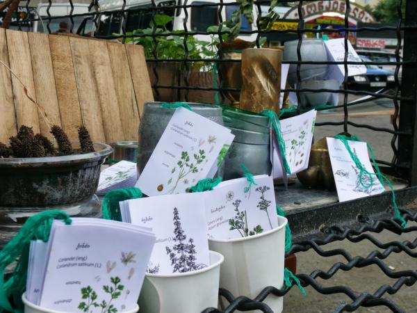 We also provided the workshop on site concerning guerilla gardening and demonstrated how to make pots and gardening accessories from the recycled material. Moreover, informational brochures were created about each herb, telling their places of origin, interesting facts, medical and other positive abilities.