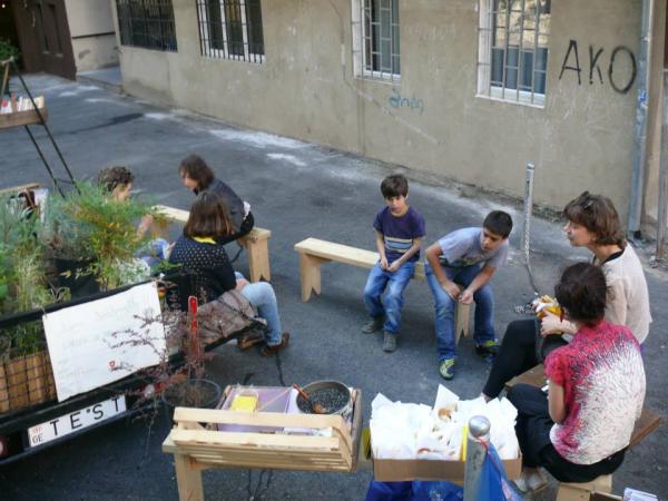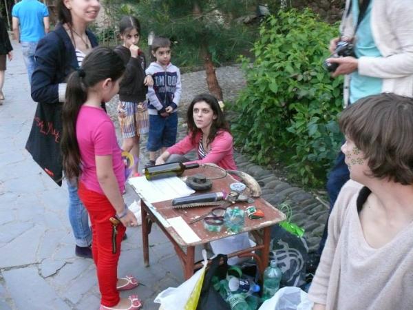 eco-cultural event. Workshop was concentrated mainly on raising awareness on environment, and reusing plastic bottles and bags, for gardening and creating art works. Workshop was led by CCA Tbilisi students.
