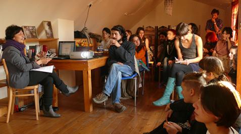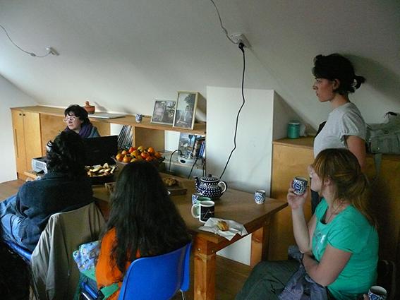 Petra Hultman gave a short talk and introduction on the use of textile craft within feminist movement and contemporary art, as well as presented her participatory art project "CO:lab" - a participatory run platform, open studio and continuous work-shop which is right now taking form within the “Art Commune” residency program. "The sewing circle" is a planned structure within the structure, a participatory art project in collaboration with NGO's in Armenia and focusing on the sewing circle as a forum for important conversations and feministic statement in society, as well as art.