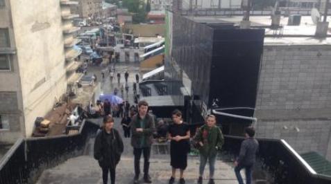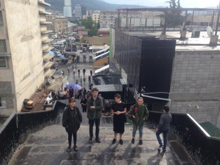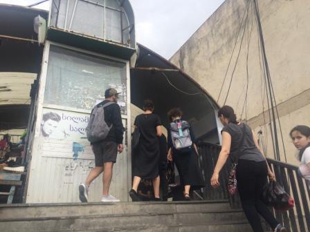 Going through the Patriots’ Bridge that connects Dadiani Avenue, platforms of railway station and Borjomi Station is a daily urban exercise for hundreds of citizens of Tbilisi. Busy dark figures go up and descend the stairs, street sellers call the clients, hairdressers chat in the corners of the passage, while smell of coffee enshrouds the space. Sounds like a typical description of a city locus from anywhere.